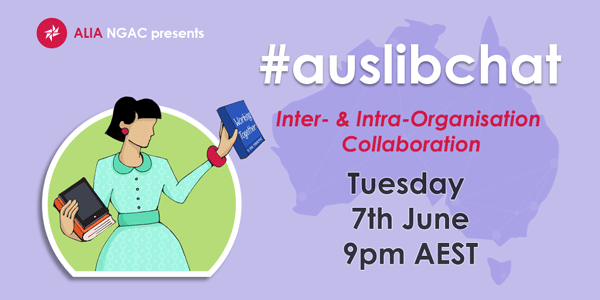 ALIA New Generation Advisory Committee (NGAC) presents #auslibchat Inter- & Intra-Organisation Collaboration on Tuesday, 7 June 2016 at 9pm.